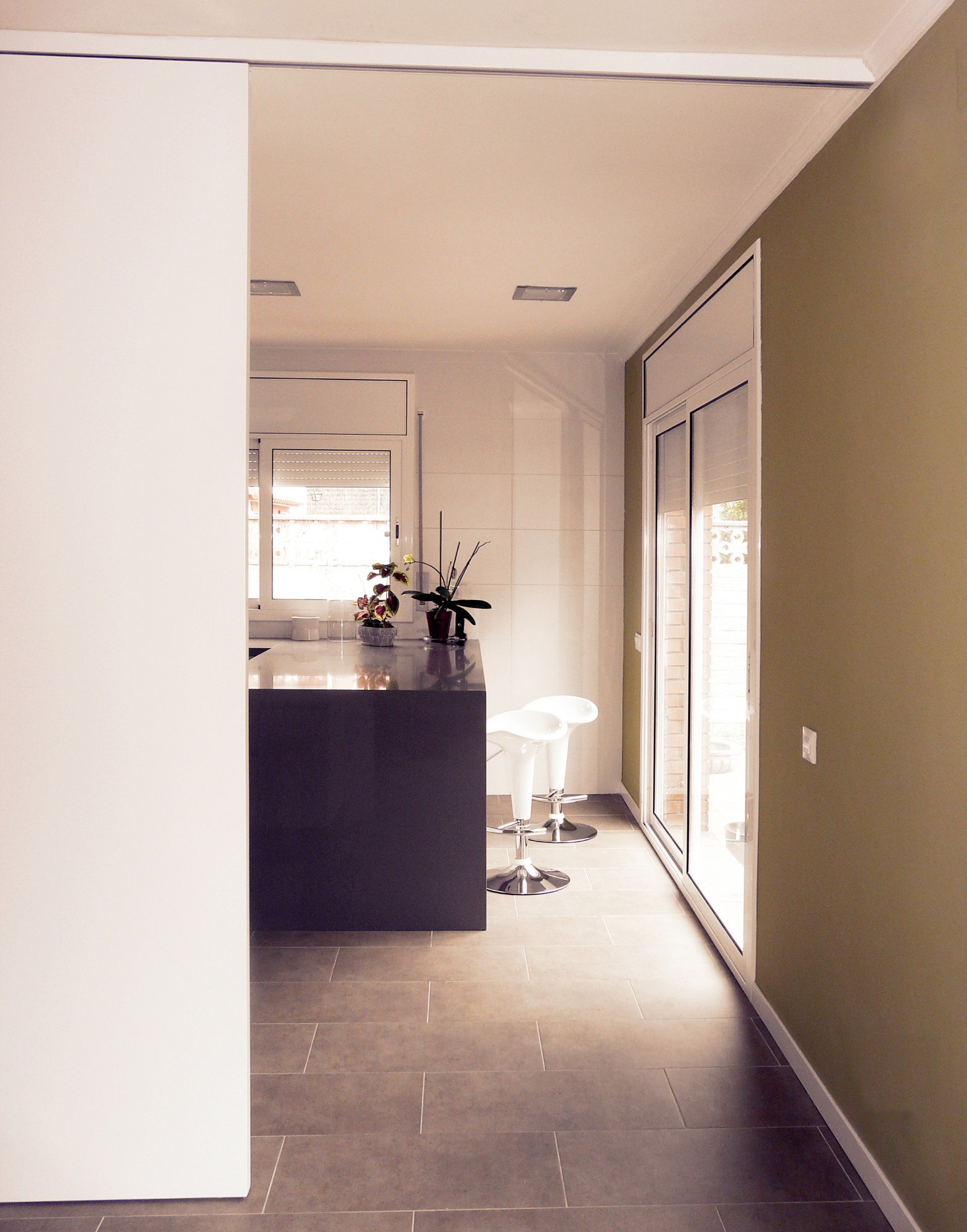 Casa unifamiliar en la que realizamos una reforma de estilo micro quirúrgico: actuaciones sutiles para mejorar la comunicación entre espacios y la privacidad de los usos.
