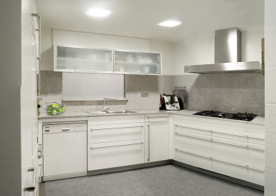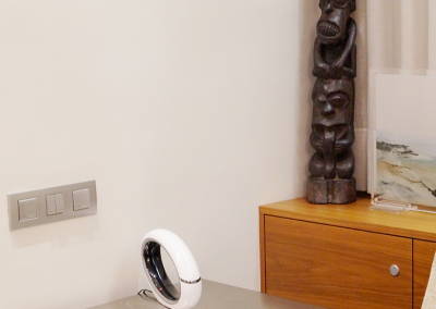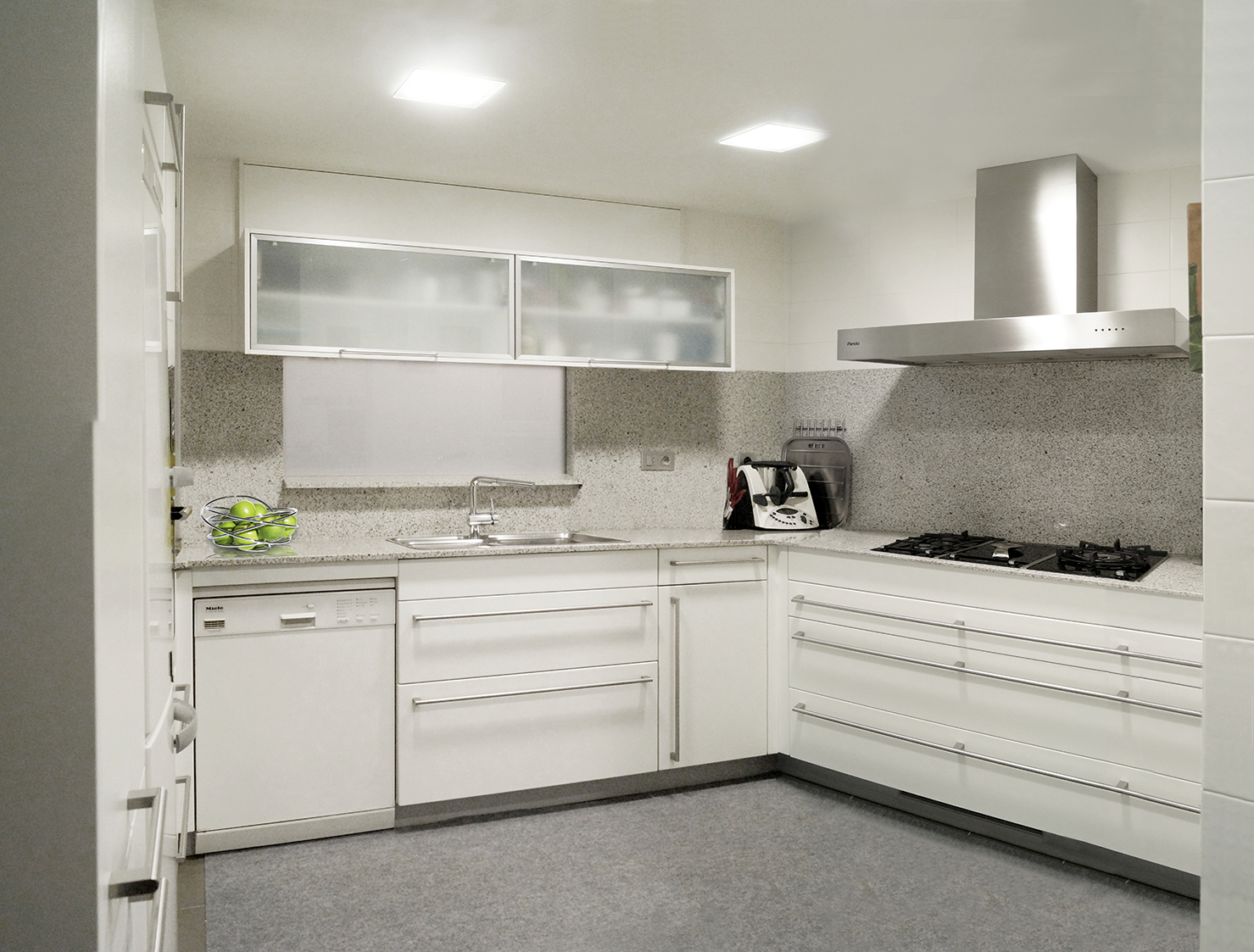 La transformación en planta es total ya que sólo se conservan los muros de carga. El espacio resultante es amplio y se complementa con útiles como un pasa platos entre la sala y la cocina o varias hornacinas para exponer la artesanía adquirida por los propietarios en sus múltiples viajes.